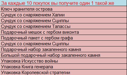 За каждые 10 новых приобретенных предметов «Божественная» (например: Божественная прочная рукоять или Божественный экстракт кровопролития), получаете 1 такой же предмет.
